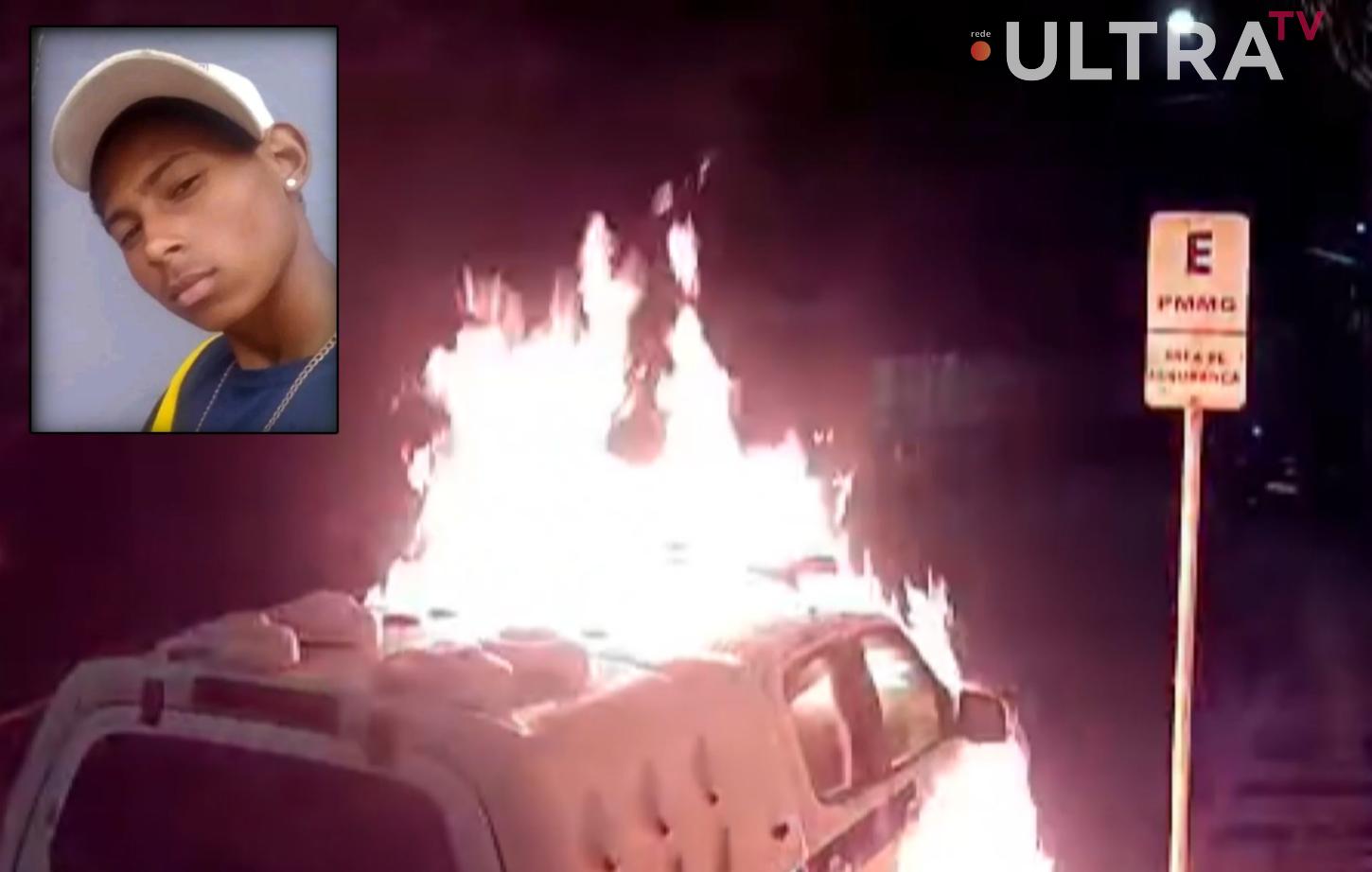 Imagens de câmera de segurança mostram o momento em que o adolescente se aproxima de uma viatura da Polícia Militar (TM), estacionada em uma rua enquanto os militares realizavam diligências, e ateia fogo no veículo, causando danos significativos.